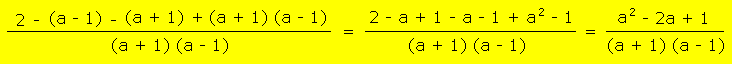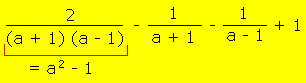 Und nun können wir das kgV direkt ablesen: (a + 1) (a - 1) Das ist unser gemeinsamer Nenner. Und damit alle Brüche diesen Nenner erhalten, müssen wir sie zuerst einzeln erweitern: