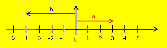 Positive Zahlen verlaufen auf unserem Zahlenstrahl nach oben, negative Zahlen nach unten. Beispiel: a = +3 und b = -4