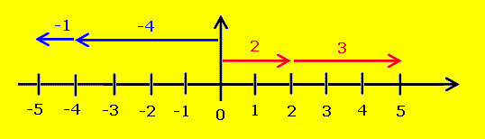 Wir beginnen in der Mitte (bei 0): 2 + 3 = 5 -4 - 1 = -5