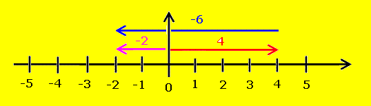 Wir beginnen in der Mitte (bei 0): 4 - 6 = -2