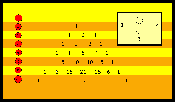 liegende Zahlen zusammenzählen und ihre Summe in die nächst untere Reihe in ihre