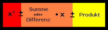GRÖSSERE in die Klammer mit dem Plus. Wir haben es mit folgendem Trinom zu tun: